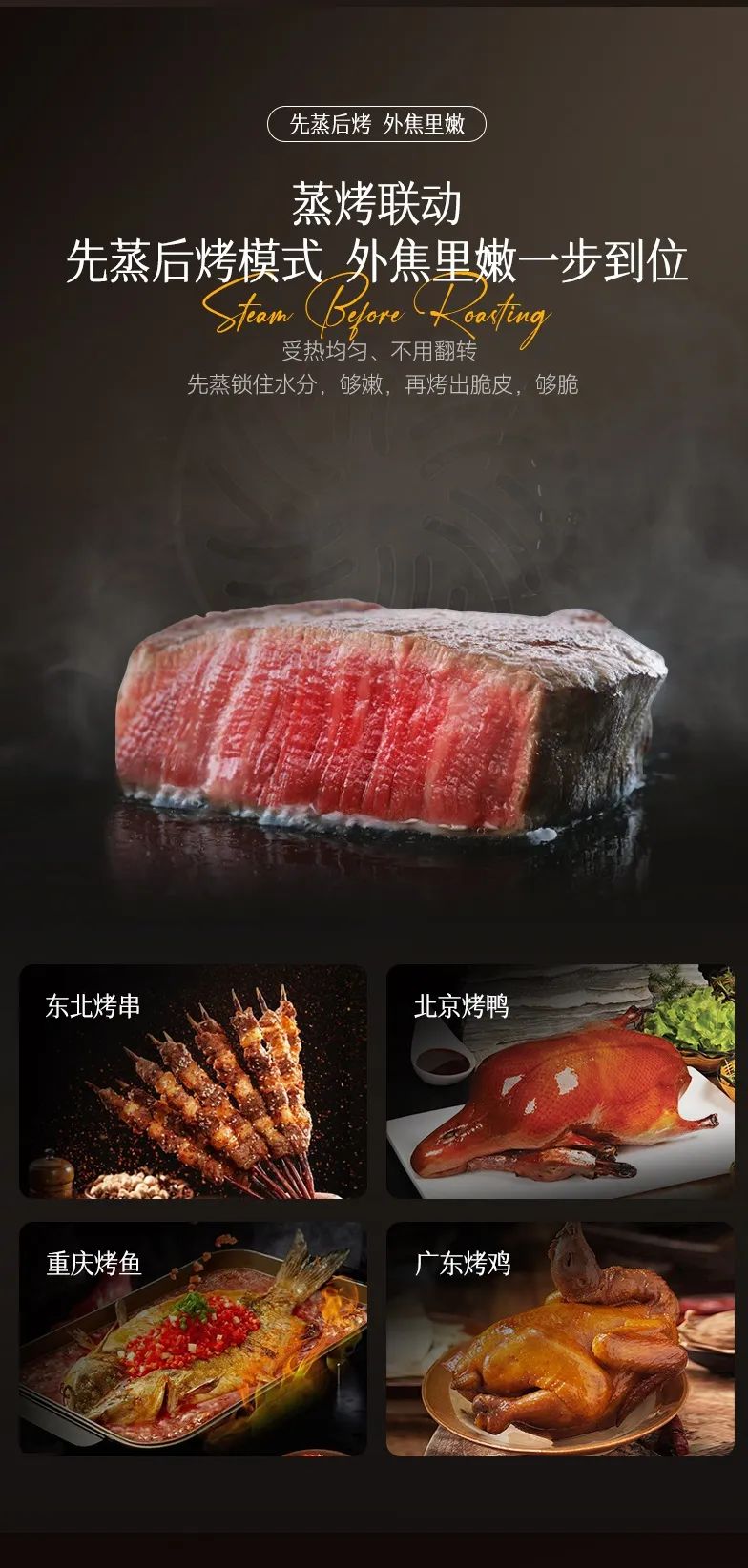 成就美味: 蒸烤联动,解锁米其林般口感。